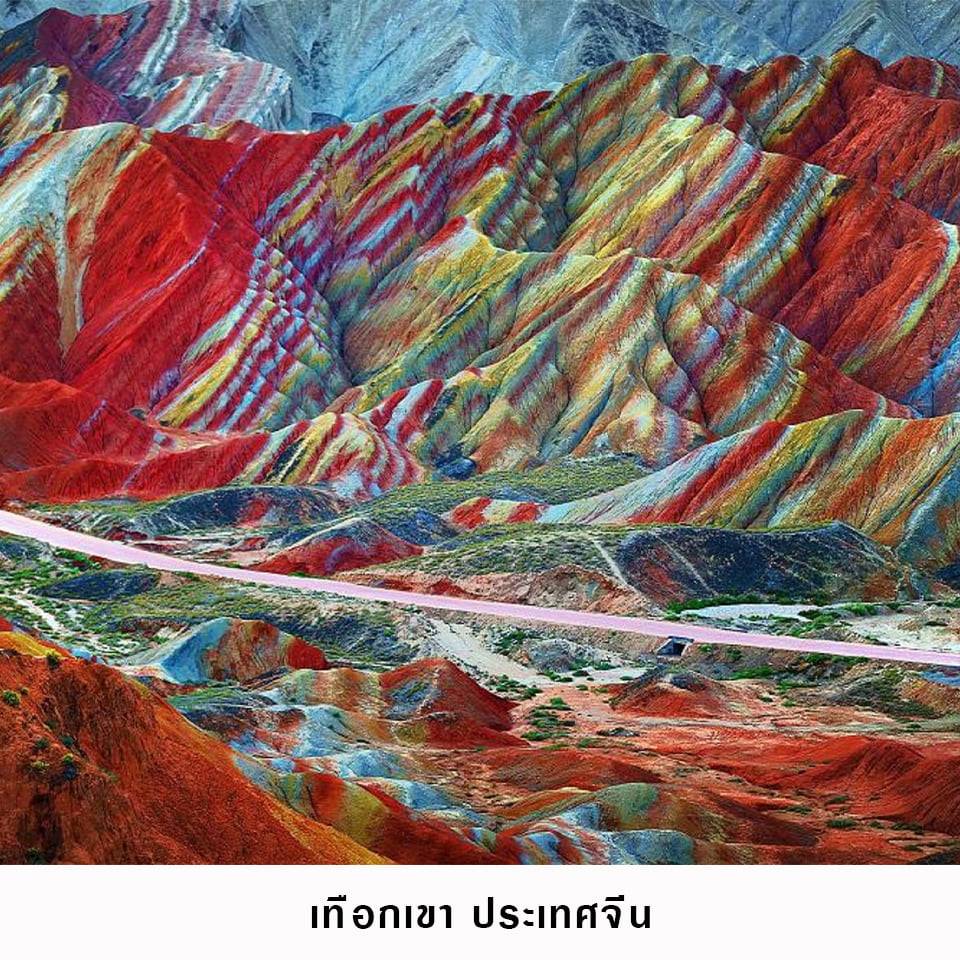 ภูเขาสีรุ้ง หรือ Rainbow Mountain สถานที่สวยสะดุดตาเหมือนภาพวาดงานศิลปะจากธรรมชาติ อยู่ในจังหวัดกานซูทางตะวันตกเฉียงเหนือของจีนครอบคลุมพื้นที่ 200 ตารางไมล์ เทือกเขาเรนโบว์เป็นหินทรายและหินอ่อนที่สะสมทับถมกันมานานกว่า 24 ล้านปีก่อน ทำให้ตะกอนถูกนำมารวมกับธาตุเหล็กและแร่ธาตุต่างๆที่ให้ส่วนประกอบสำคัญในการสร้างสีสันนี้
