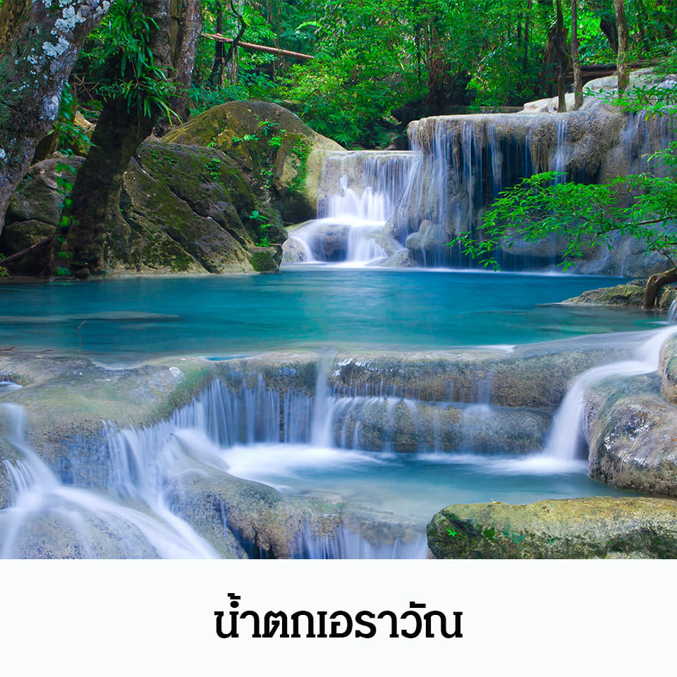 น้ำตกเอราวัณ เป็นน้ำตกที่ใหญ่และสวยงาม บนฝั่งแม่น้ำแควใหญ่ ตั้งอยู่ที่ อำเภอศรีสวัสดิ์ จังหวัดกาญจนบุรี เป็นน้ำตกที่มีระยะทางยาวประมาณ 1,500เมตร ติดต่อกัน ซึ่งแบ่งออกเป็นชั้นๆ ได้ 7 ชั้นเป็นน้ำตกขนาดใหญ่เดิม มีชื่อว่า น้ำตกสะด่องม่องลาย ตามชื่อลำห้วยม่องล่ายซึ่งเป็นต้นน้ำของน้ำตกที่เกิดจากยอดเขา ตาม่องล่ายใน เทือกเขาสลอบ สายน้ำจะไหลมาตามชั้นหินเป็นระยะทางประมาณ 1,500เมตร แบ่งออกเป็นชั้นใหญ่ๆได้ 7 ชั้น แต่ละชั้นมีีความสวยงามร่มรื่นไปด้วยแมกไม้นานาพันธุ์ ทั้งเถาวัลย์พันเกี่ยวทอดตัวไปบนต้นไม้ใหญ่ กล้วยไม้ป่า หลายชนิดบนคาคาคบไม้ สายธารน้ำที่ไหลตกลดหลั่นลงมาบนโขดหินสู่แอ่งน้ำเบื้องล่าง เสียงสาดซ่า คลอเคล้า ด้วยเสียงเพรียกของนกป่า ทำให้สภาพความเป็นธรรมชาติสมบูรณ์แบบยิ่งขึ้น นับเป็นบรรยากาศที่เรียกเอาความมี คุณค่าของป่าเขาลำเนา ไพรซึมซับเข้าสู่อารมณ์ของผู้ใฝ่ความสันโดษ และรักธรรมชาติโดยแท้จริง ในชั้นที่ 7อันเป็นชั้นบนสุดของน้ำตกลักษณะของน้ำตกชั้นที่7 ลักษณะสายน้ำไหลบ่า มองดูคล้ายกับหัวช้างเอราวัณซึ่งมี 3 หัว จึงกลายมาเป็นที่มาของชื่อน้ำตก จนคนทั่วไปรู้จักและขนานนามว่า “น้ำตกเอราวัณ”