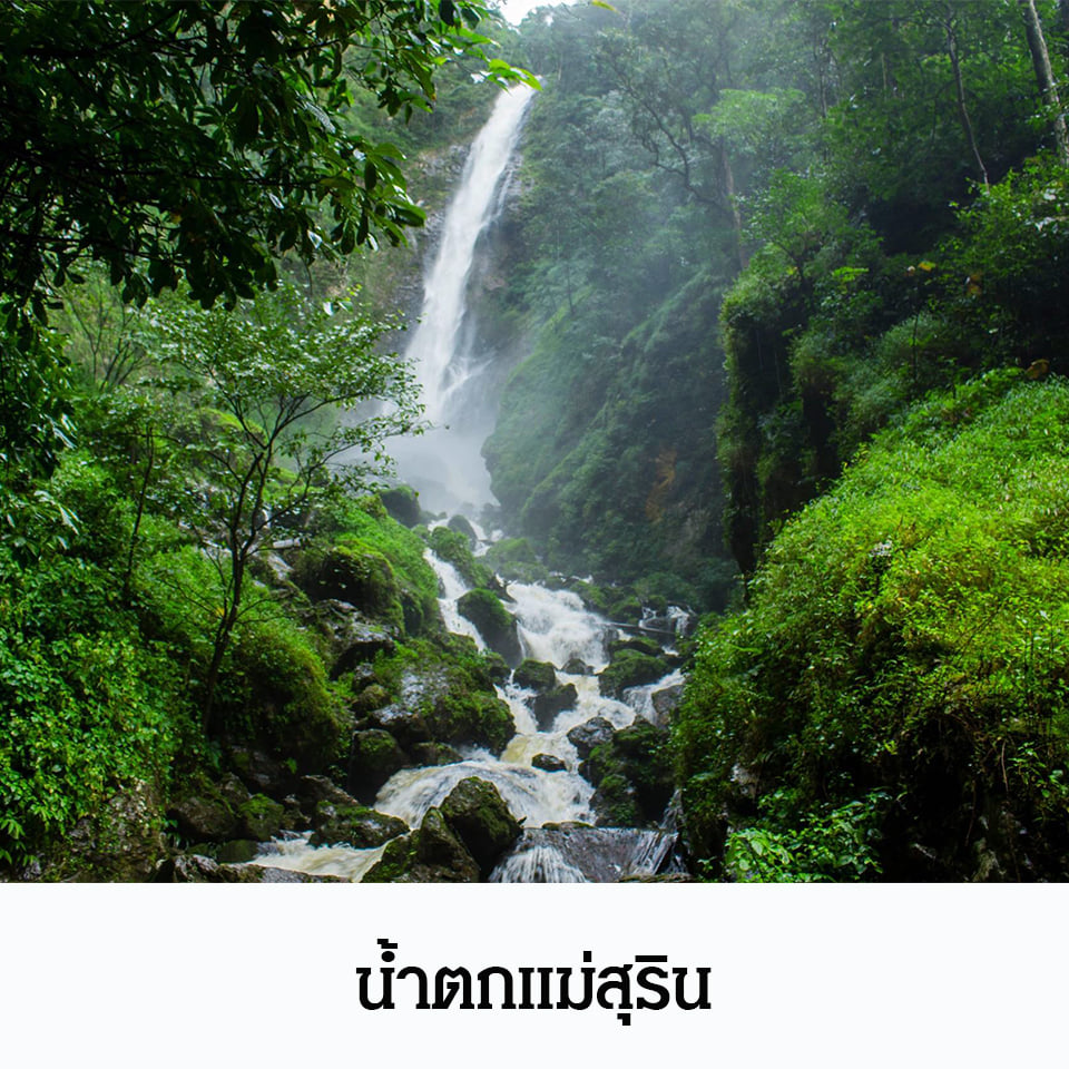 น้ำตกแม่สุรินทร์ เป็นต้นน้ำชั้นเดียว ที่สวยงามมากและมีน้ำไหลตลอดปี นับว่าเป็นน้ำตกที่สูงที่สุดแห่งหนึ่งของประเทศ เกิดจากแม่น้ำสุรินทร์ มีสภาพธรรมชาติรอบด้านเป็นภูเขาสูงชันไหลลงมาเป็นสายยาวจากหน้าผาสู่หุบเขาอุทยานแห่งชาติน้ำตกแม่สุรินทร์ ตั้งอยู่ในท้องที่อำเภอขุนยวมและอำเภอเมือง จังหวัดแม่ฮ่องสอน สภาพพื้นที่เป็นป่าเขา เรียงรายสลับซับซ้อน มีภูเขาหินและหน้าผาน้อยใหญ่ สูงชันในลักษณะที่แตกต่างกันและคล้ายกันที่สวยงามหลายแห่ง เป็นแหล่งต้นน้ำลำธารที่อุดมสมบูรณ์ ตลอดจนมีเอกลักษณ์ทางธรรมชาติที่สวยงาม เช่น น้ำตกต่างๆ อุทยานแห่งชาติน้ำตกแม่สุรินทร์ มีเนื้อที่ประมาณ 396.60 ตารางกิโลเมตร หรือ 247,875 ไร่
