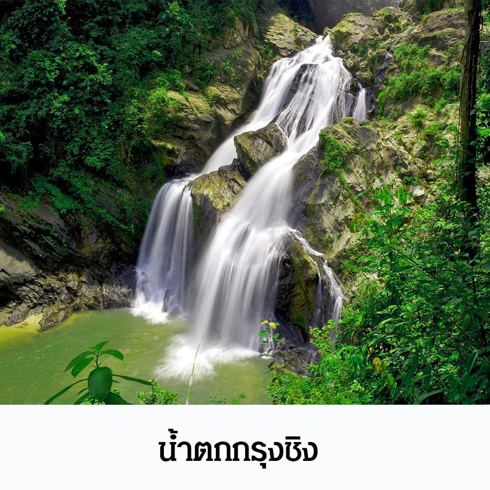 น้ำตกกรุงชิง อีกหนึ่งน้ำตกที่มีความสวยงามและมีชื่อเสียงมากเป็นอันดับต้นๆของจังหวัดนครศรีธรรมราช น้ำตกตั้งอยู่ในเขตพื้นที่ของ อุทยานแห่งชาติเขาหลวง อุทยาน แห่งชาติที่ตั้งอยู่ในตำบลกรุงชิง ชื่อ “กรุงชิง” มาจากคำว่า “ต้นชิง” ซึ่งเป็นพันธุ์ไม้ตระกูลปาล์มชนิดหนึ่งที่มีอยู่มาก ในเขตนี้ที่นี่มีประวัติศาสตร์จากการที่เคยเป็นที่ตั้งของกลุ่ม คอมมิวนิสต์ แต่ปัจจุบันกลายมาเป็นแหล่งท่องเที่ยวที่สวยงามที่ มีผู้คนมาเยือนไม่ขาดสาย ด้วยน้ำตกขนาด 7 ชั้น ที่ลดหลั่นความสูงลงมาต่างๆ ระดับกัน ในป่าเขตนี้ยังเป็นเส้นทางเดินศึกษาธรรมชาติของป่าที่อุดมสมบูรณ์อีกด้วย เนื่องจาก มีพืชพรรณไม้ต่างๆ ให้ได้ศึกษา เช่น เฟิร์นมหาสดำ ปาล์มชก ต้นหลุมพอ ปาล์มชิง ปาล์มช้างร้องไห้ และอื่นๆอีกหลายชนิดที่หาชมได้เฉพาะที่นี่เท่านั้น ระยะทางเริ่มเดินจนสิ้นสุดก็จะประมาณ 3.7 กิโลเมตร การเข้าไปชมน้ำตกกรุงชิง จะต้องเดินทางด้วยเท้าจากที่ทำการหน่วยอุทยาน เดินเข้าไปในป่า ตามเส้นทางเดินที่เตรียมเอาใว้ จะมีป้ายบอกเส้นทางและสิ่งที่น่าสนใจระหว่างทางเป็นระยะๆ ทางเดินเป็นทางลาดชันและขรุขระเล็กน้อย สามารถเดิน ได้ไม่ค่อยลำบากแต่มีทากควรเตรียมอุปกรณ์มาให้พร้อม