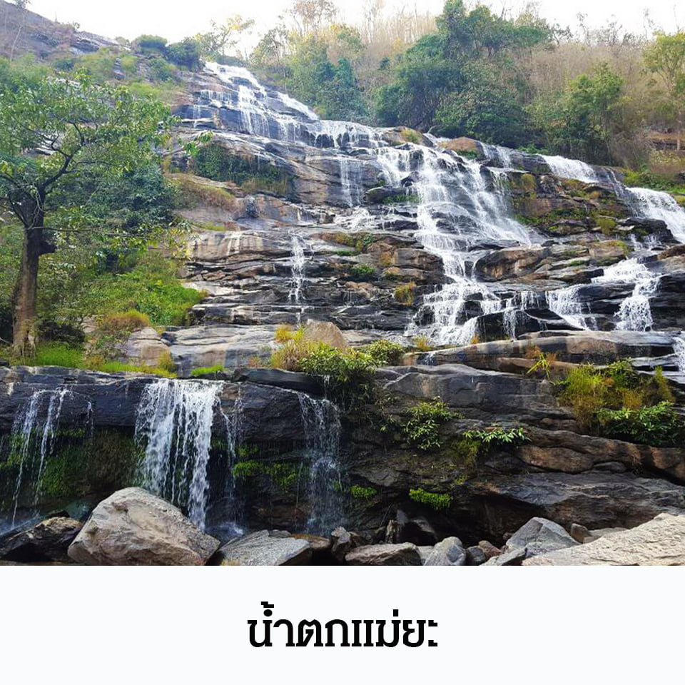 น้ำตกแม่ยะ เป็นน้ำตกขนาดใหญ่ที่สุดในจังหวัดเชียงใหม่ มีความสวยงามติดอันดับหนึ่งในสิบยอดน้ำตกของ ประเทศไทย สายน้ำจะไหลลงมาตามหน้าผาสูงชันราว 280 เมตร กระทบโขดหินเป็นชั้น ๆ เหมือนม่านน้ำ แล้ว ไหลลงไปรวมกันที่แอ่งน้ำใสเบื้องล่าง สามารถเล่นน้ำได้อย่างปลอดภัย รอบ ๆ บริเวณเป็นป่าเขาร่มรื่นเงียบสงบ ปริมาณน้ำมากมายมหาศาลของน้ำตกแม่ยะ โดยเฉพาะในช่วงหน้าฝนนั้น เกิดจากต้นน้ำในผืนป่าสูงบนยอดดอยอิน ทนนท์ ซึ่งเป็นยอดเขาที่สูงที่สุดของประเทศไทย นอกจากน้ำตกแม่ยะแล้ว นักท่องเที่ยวยังสามารถขึ้นไปเที่ยวชม ความงดงามของน้ำตกอื่น ๆ บนดอยอินทนนท์ได้อีก รวมทั้งศึกษาธรรมชาติในป่าดึกดำบรรพ์บริเวณอ่างกาหลวง ซึ่งทางอุทยานฯ ได้จัดเส้นทางไว้ให้ศูนย์ประชาสัมพันธ์นักท่องเที่ยวตั้งอยู่ด้วย บริเวณน้ำตกสะอาดและจัดการพื้นที่ได้กลมกลืนกับสภาพแวดล้อม การเดินทาง จากทางแยกเข้าทางหลวง 1009 ไปประมาณ 1 กิโลเมตร เลี้ยวซ้ายเข้าไป 14 กิโลเมตร และต้องเดินเท้าเข้าไปอีก 200 เมตร