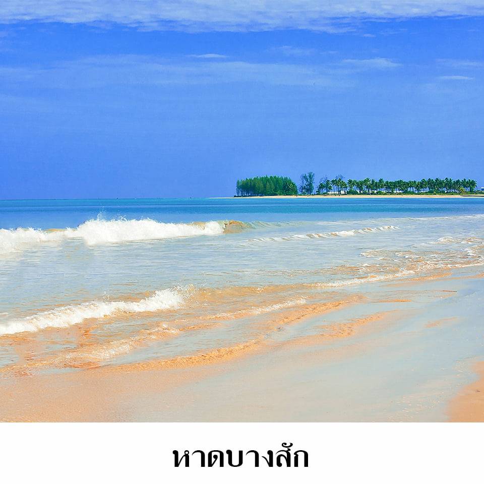 หาดบางสัก อยู่ในตำบลบางม่วง ริมถนนสายเพชรเกษม สายท้ายเหมือง-ตะกั่วป่า กิโลเมตรที่ 76-77 มีทางแยกซ้ายมือเข้าไป 100 เมตร ชายหาดบางสักมีหาดทรายขาวสะอาดยาวขนานกับทิวสนร่มรื่น เล่นน้ำได้ ยามเย็นจะมีชาวบ้านนักท่องเที่ยวมานั่งชมรอพระอาทิตย์ตกอยู่เสมอ ชายหาดจะมีที่พัก และร้านอาหารบริการ