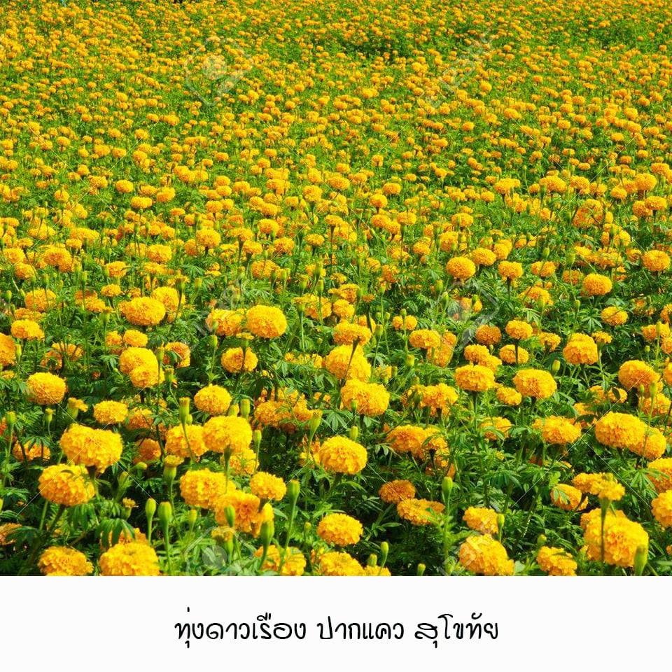 ดอกดาวเรืองแปลงใหญ่กว่า 50 ไร่ของชาวบ้าน จะเริ่มต้นเพาะปลูกในเดือนพฤศจิกายน ก่อนที่ดอกดาวเรืองจะออกดอกสีเหลืองสะพรั่ง ในช่วงเดือนมกราคม ก่อนจะถูกตัดไปขายในเดือนเมษายน ที่นี่กลายเป็นหนึ่งในสถานที่ท่องเที่ยวของสุโขทัยที่สวยงามเป็นอีกหนึ่งสถานที่มาได้มาแล้วต้องแวะเก็บภาพสักครั้ง
