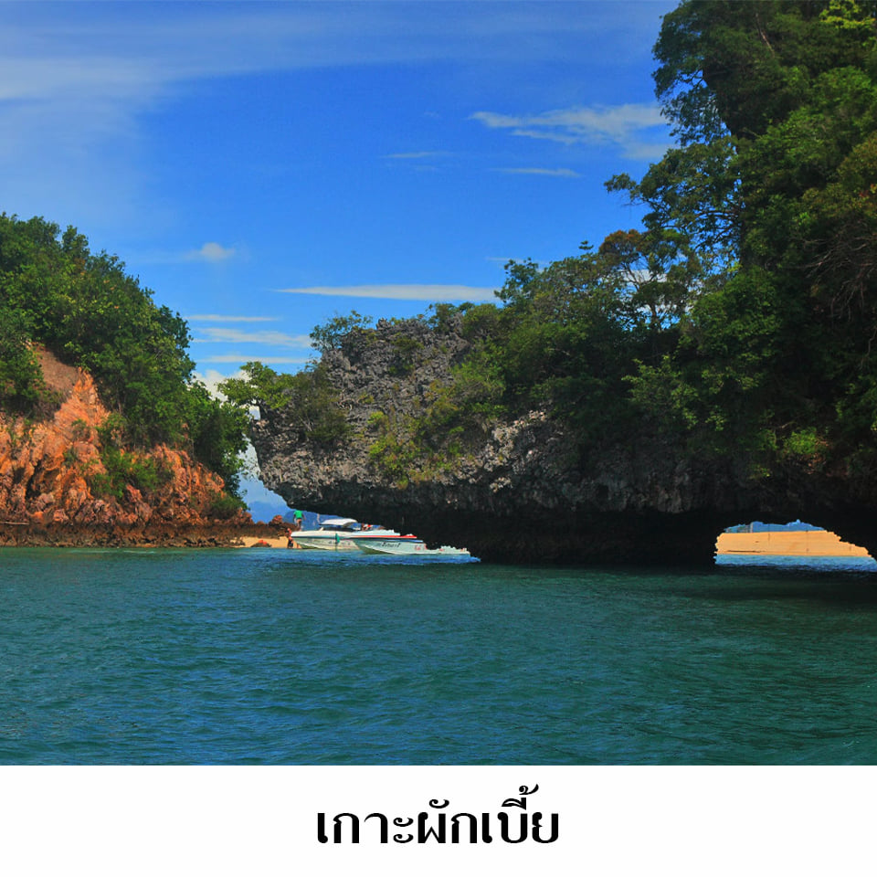 เกาะผักเบี้ย เป็นเกาะเล็ก ๆ อยู่ทางด้านหลังของเกาะห้อง น้ำทะเลที่นี่ใสสะอาด เหมาะแก่การลงเล่นน้ำบรรยากาศเงียบสงบร่มรื่น ไปด้วย ต้นไม้น้อยใหญ่ที่อยู่ริมหาด เกาะผักเบี้ยนี้ แม้ว่าจะมีแนวชายหาดที่ไม่กว้างมากนัก แต่ก็มีหาดทรายที่ขาวสะอาดไม่แพ้ หาดอื่น ๆ เมื่อน้ำลงสันทรายที่เกาะผักเบี้ยนี้จะปรากฏเป็นแนวยาวไปจนจรดอีกเกาะหนึ่ง ซึ่งเรียกว่า เกาะผักเบี้ย เช่นกัน และสามารถเดินถึงกันได้ในเวลาน้ำลงเต็มที่เท่านั้น เพราะในเวลาที่น้ำขึ้น น้ำก็จะแยกเกาะผักเบี้ยออกเป็นสองเกาะนั่นเอง