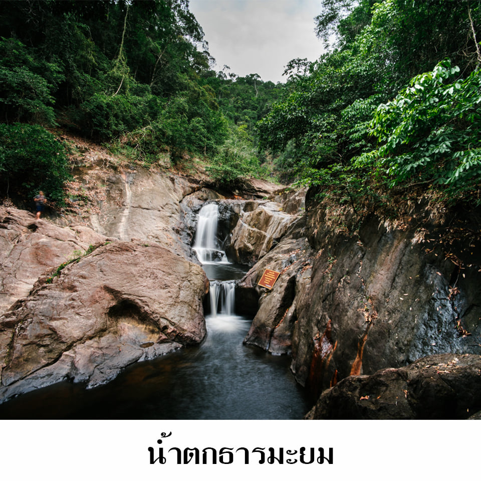 น้ำตกธารมะยม ตั้งอยู่ทางเกาะช้างใต้ หรือขึ้นจากท่าเรือแล้วเลี้ยวซ้าย เป็นน้ำตกที่สวยที่สุดบนเกาะช้าง มีน้ำไหลเต็มตลอดทั้งปี เอกลักษณ์เด่นของน้ำตกแห่งนี้คือ สายน้ำที่ไหลตามร่องหินแรนิตสีดำอย่างสวยงาม และที่สำคัญพระบาทสมเด็จพระเจ้าอยู่หัว รัชกาลที่ 5 , 6 และ 7 เคยเสด็จประพาสมายังน้ำตกนี้ และทรงลงปรมาภิไธยย่อสลักลงบนหินในบริเวณน้ำตกอีกด้ว