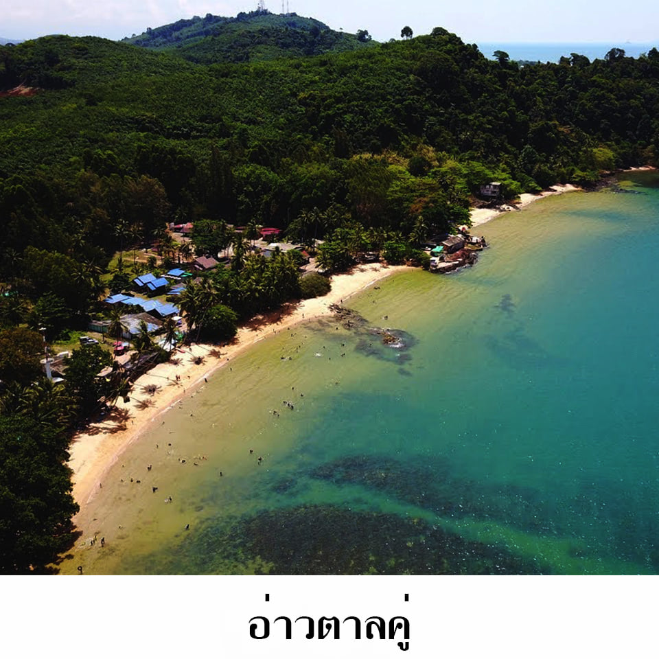 อ่าวสวยงามในอำเภอแหลมงอบ ที่มีจุดเด่นตรงหาดทรายละเอียดและวิวสวย มีความยาวของชายหาดประมาณ 500 เมตร โดยชื่ออ่าวมาจากต้นตาล 2 ต้นขึ้นคู่กันบริเวณกึ่งกลางอ่าวพอดี แต่ปัจจุบันต้นตาลได้ล้มไปแล้วจากน้ำทะเลเซาะชายฝั่ง